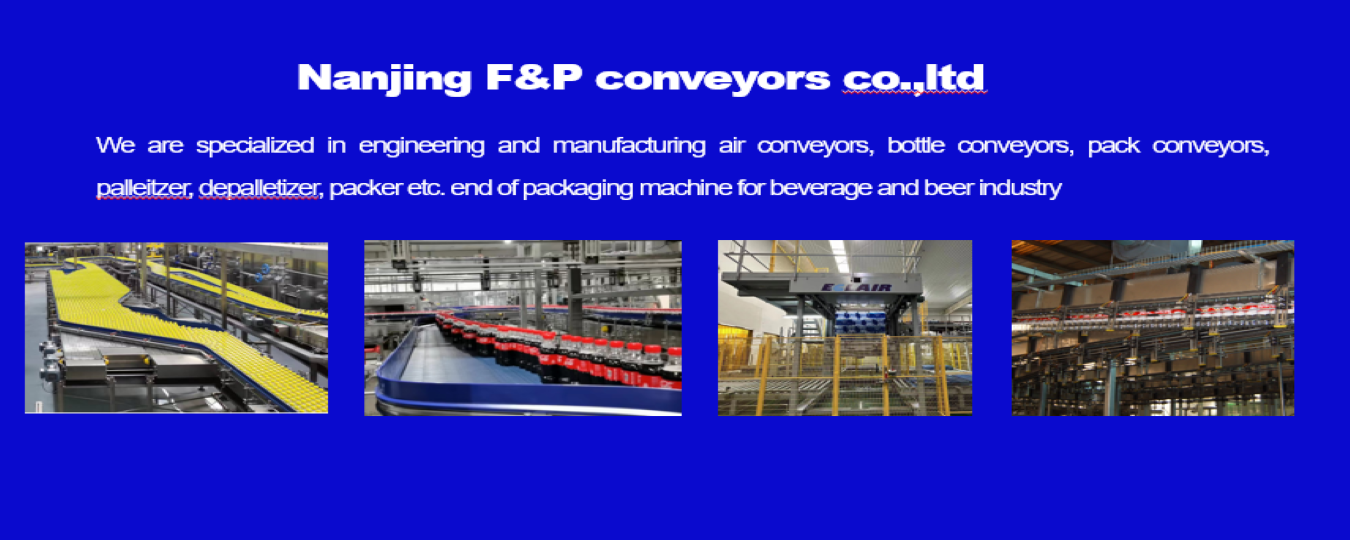 Nanjing F&P conveyors co., ltd. Is Sino French joint venture set up in 2007, which is specialized in manufacturing air conveyors, bottle conveyors, pack conveyors, pallet conveyors, packer and palletizer etc. packaging equipment.